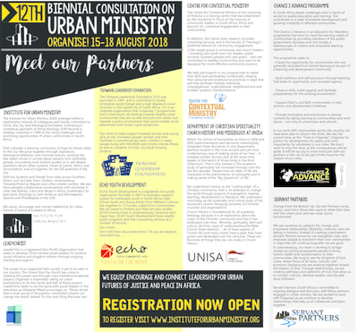 12th biennial consultation on urban ministry. city of tshwane 15-18 August 2018 -organise now!8/13/2018